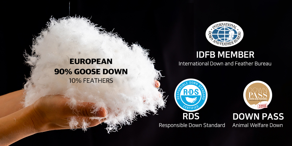 3. As a member of the IDFB(International Down & Feather Bureau), we only use strictly selected Down. We have received RDS (Responsible Down Standard) and DOWNPASS.